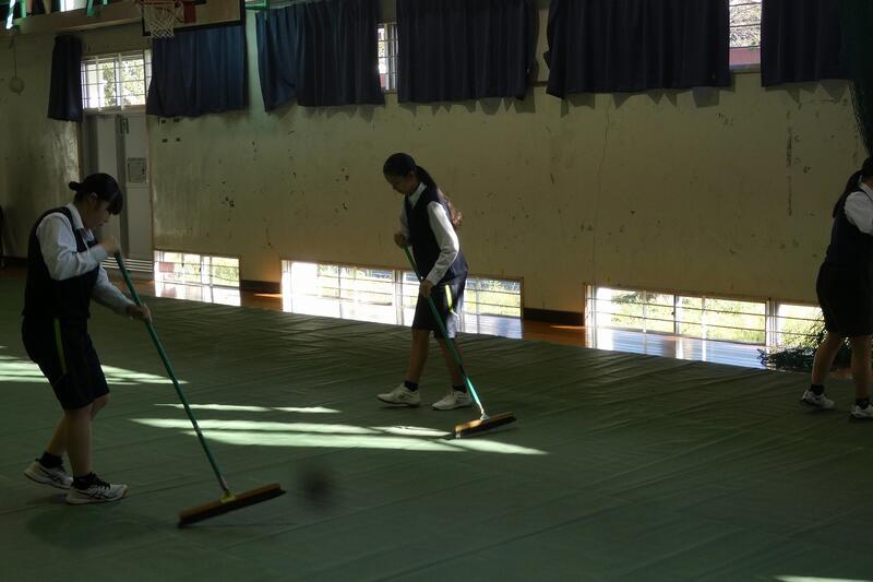 実行委員長を筆頭に、シート敷き、シート掃除、ギャラリー掃除、椅子並べ、展示作品の掲示やトイレ掃除、玄関掃除、体育館周辺掃除など全学年で一生懸命取り組むことができました。