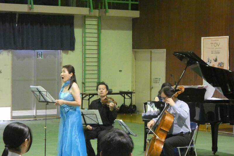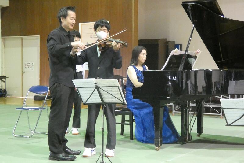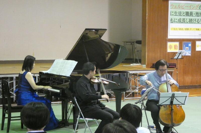 午前中は、鑑賞教室を行いアンサンブル宮崎の方々にお越しいただいて、歌や演奏を鑑賞したり実際に前に出て弾いたりして貴重な体験ができました。