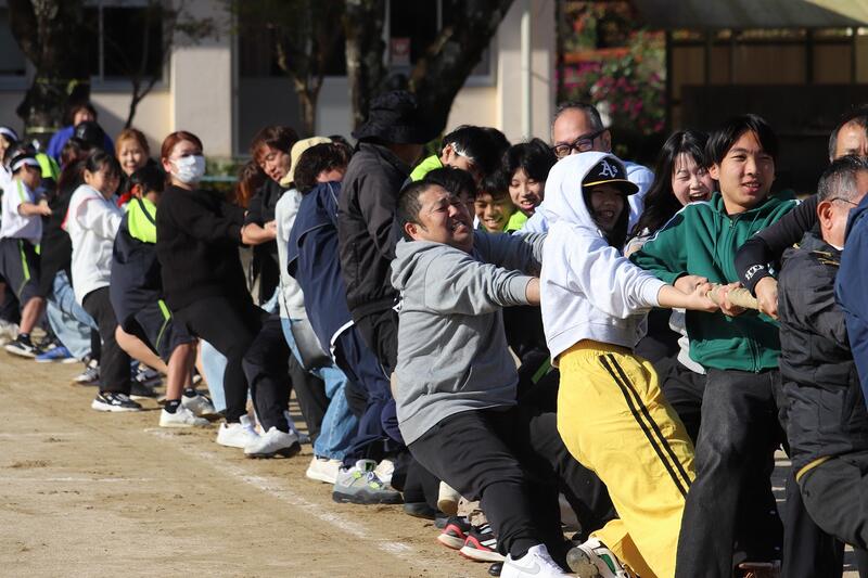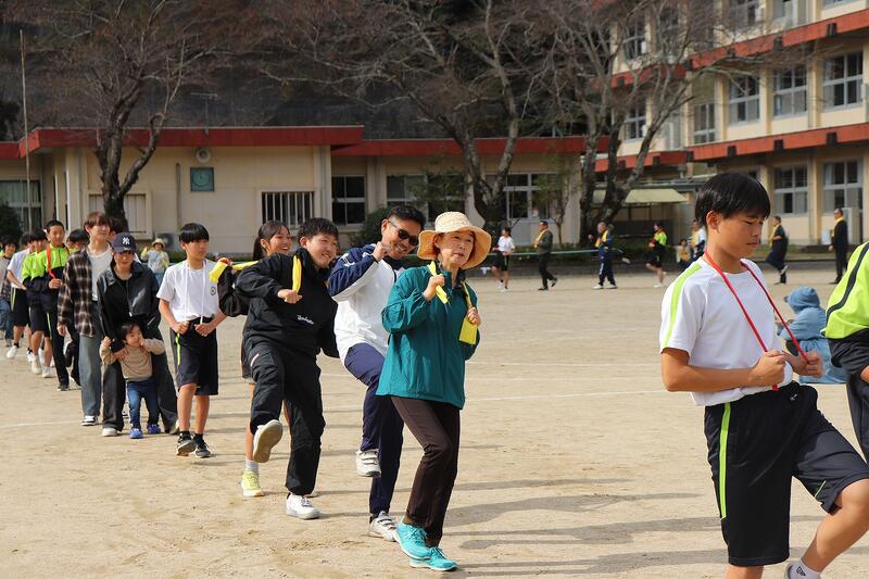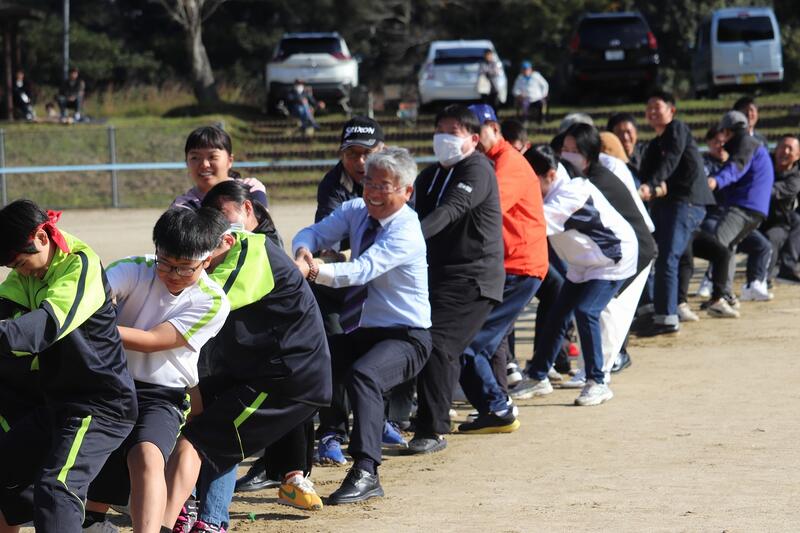 また、「地域対抗綱引き」では、中学生の若さと地域の皆様のパワーが激突し、会場は大いに盛り上がりました。生徒への温かいご声援、そして各競技へのハッスルしたご参加、本当にありがとうございました。
