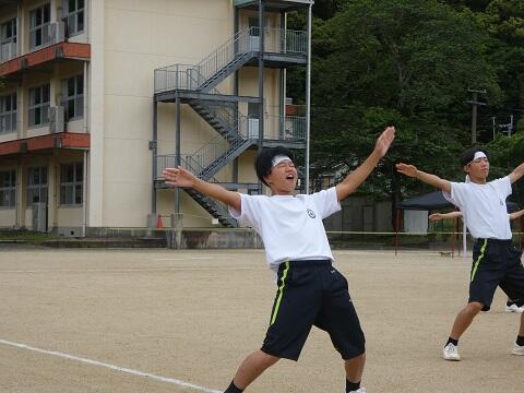 団に分かれて応援練習の練習です。リーダー達が一生懸命声を出していました。リーダーの頑張りに答えるように他の生徒も動きや声出しを練習しました。