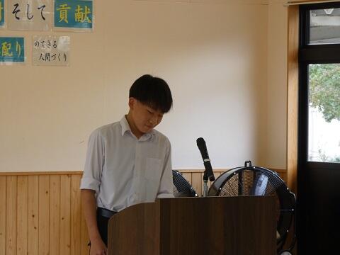 1学期の終業式がありました!各学年の代表から一学期の振り返りを発表してもらいました。一学期で良かったことがある一方で、課題もあるようです。2学期からは1学期の反省を生かして、より充実した夏休みと2学期にしましょう。