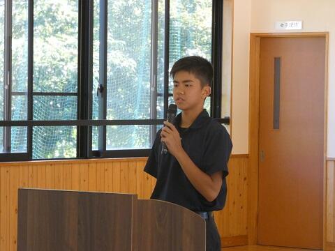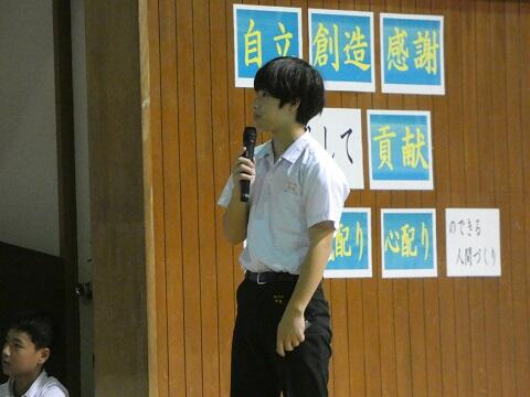 最初に各学年の代表から1学期の振り返りを発表してもらいました。1学期で良かったことがある一方で、良くなかったところもあるようです。2学期からは1学期の反省を活かして、より充実した夏休みと2学期にしましょう!