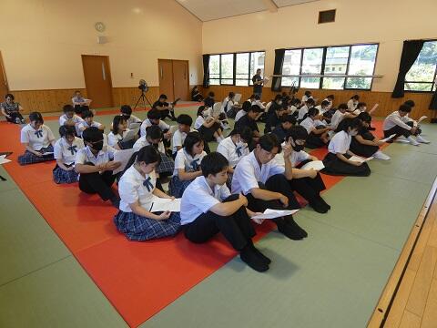 武道場では、地震に関する注意事項を、動画などを使って確認しました。8月8日に宮崎でも最大震度6弱の大きい地震があり、一週間ほど南海トラフ地震臨時情報が発表されました。このような事態がまたいつ起きるか分かりません。防災の準備は先送りにせず、今から行いましょう!