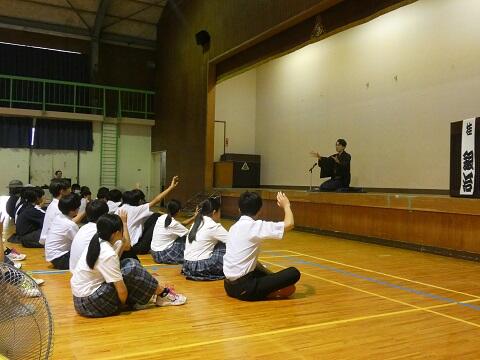本日、来ていただいたのは落語家の桂 銀治さんです。落語の基本や道具を説明しながら、落語や小話をしていただきました。