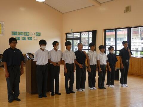 また県中体連に出場する生徒に向けて、激励式を行いました。バドミントン部の各ペアから決意表明と選手宣誓が行われました。とても立派な選手宣誓でした!延岡地区の代表として頑張ってください!