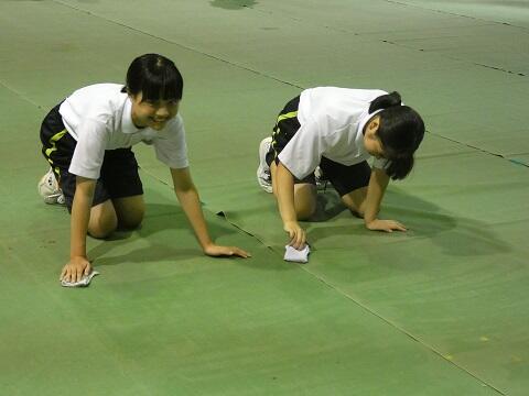 次にシートを雑巾で拭きます。これが大変でした。汗をかきながら、みんなで拭いてくれました!ありがとう!
