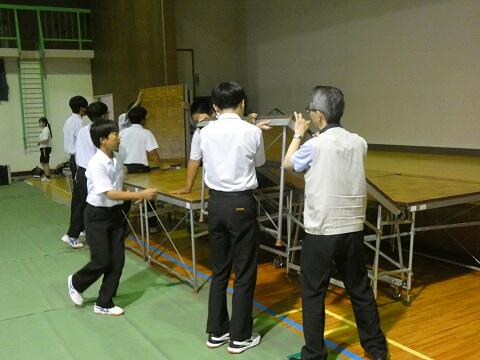 これはステージを作っているところです。先生達と一緒に協力しています。3年生が中心になって頑張ってくれました。