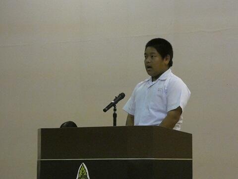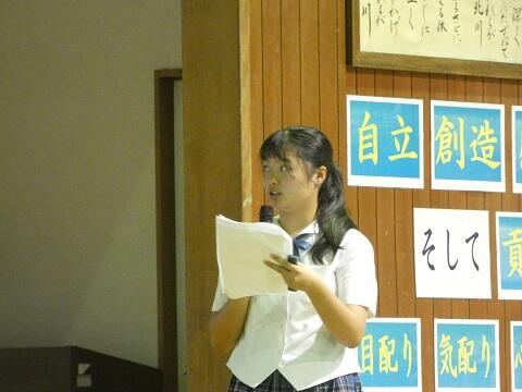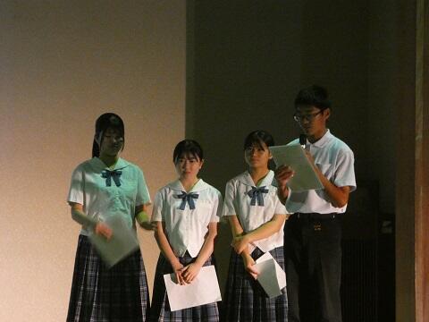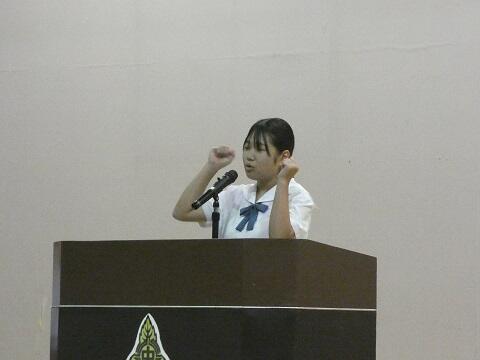 次に英語の暗唱・弁論発表です。英語のタイトルは「Inside the Head」と「Hometown」です。2人とも流ちょうな英語で,自信に満ちたパワフルな発表でした。身振り手振りも入れて、相手に思いを伝えようとする姿に、とても感心させられました。