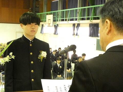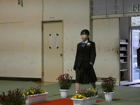 をそれぞれ、読みました。保護者の方からの愛のこもったメッセージを読み、今まで育ててくれたことへ感謝すると共に、これからの人生に希望を抱いたことと思います。来年は、3年生になります。これからの北川中学校を引っ張っていってくれることを期待しています。