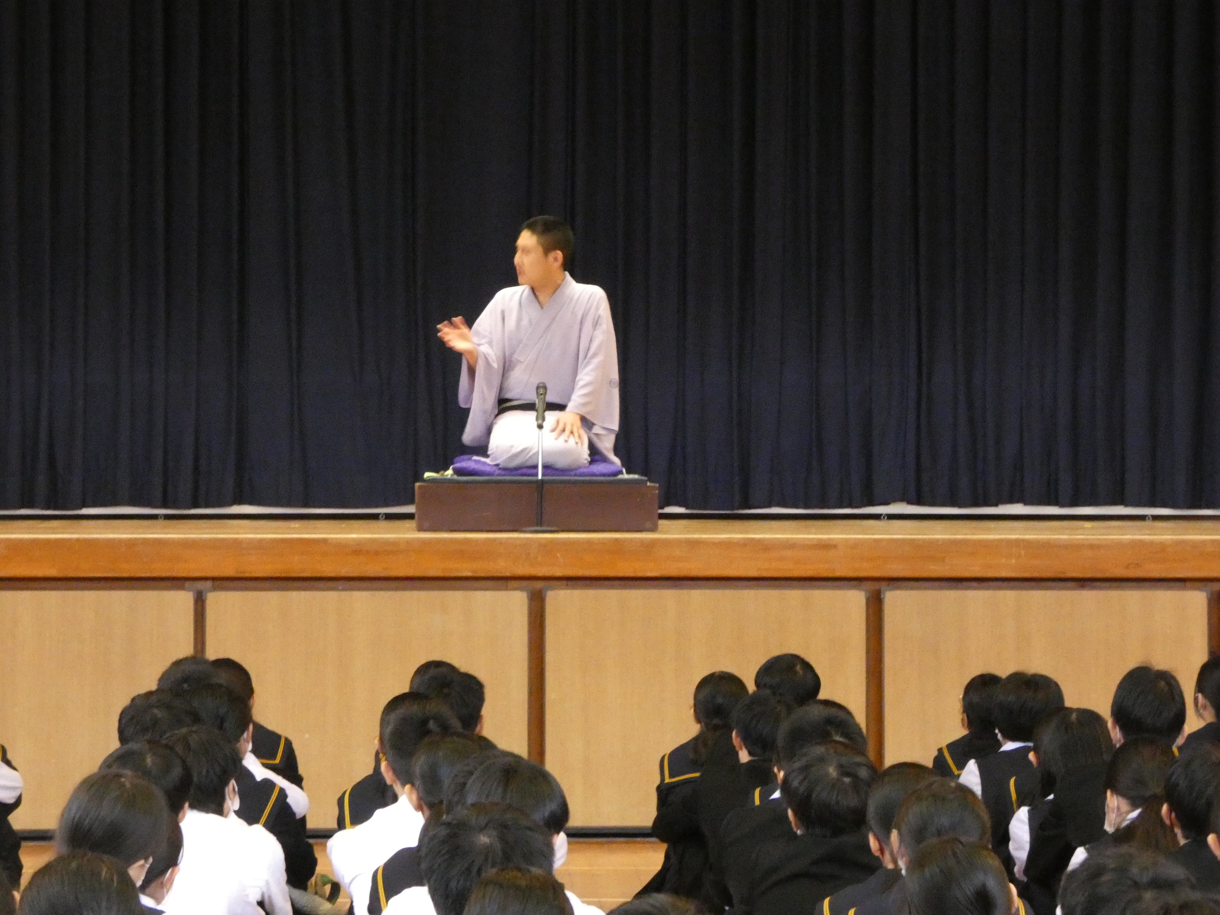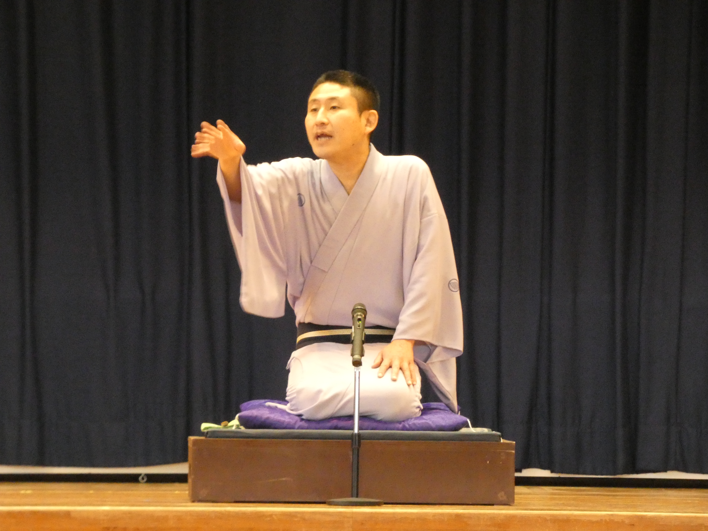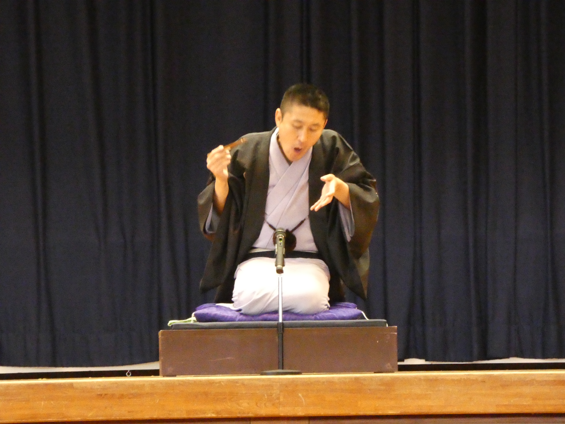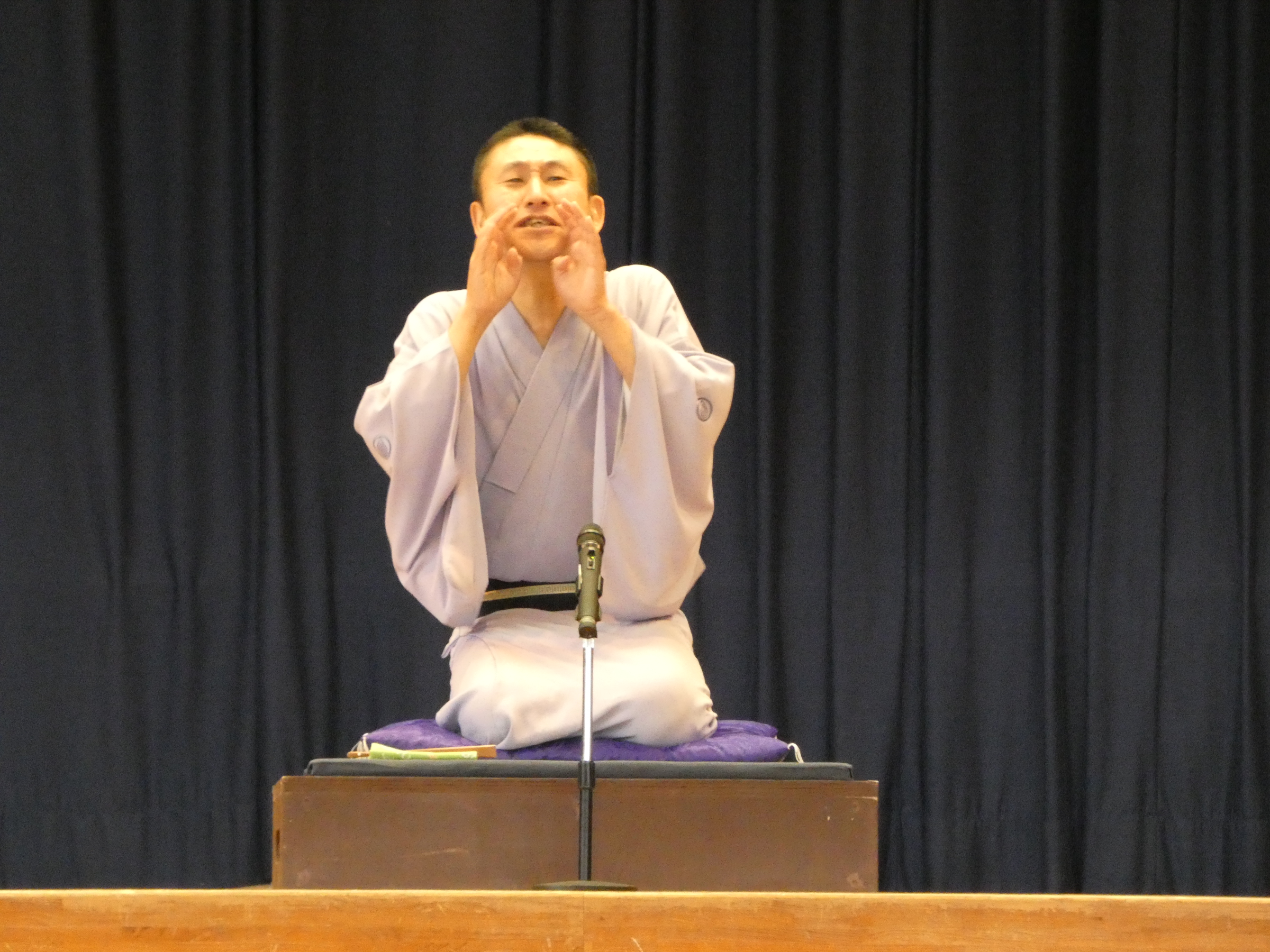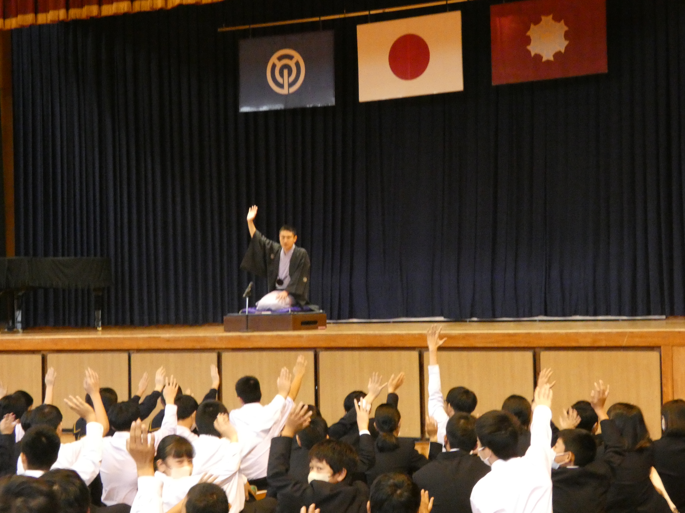 鑑賞教室がありました。今回は旭中学校へ行き、落語を観ました。