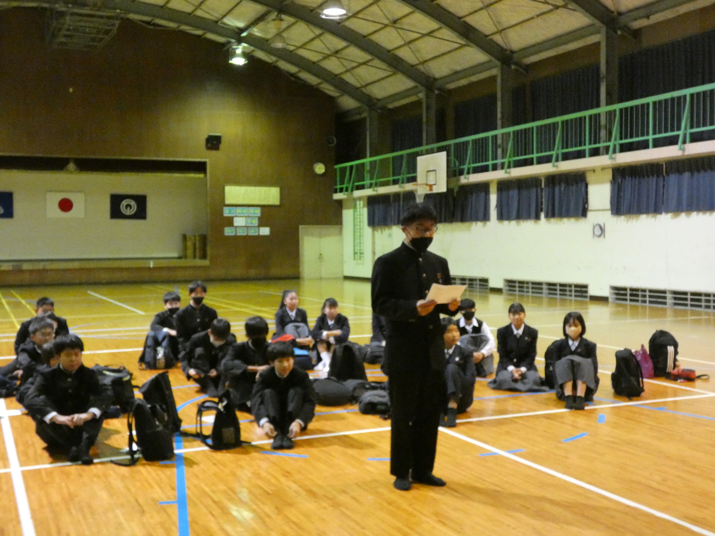 明日は私立高校入試です。今日の5時間目は事前指導がありました。