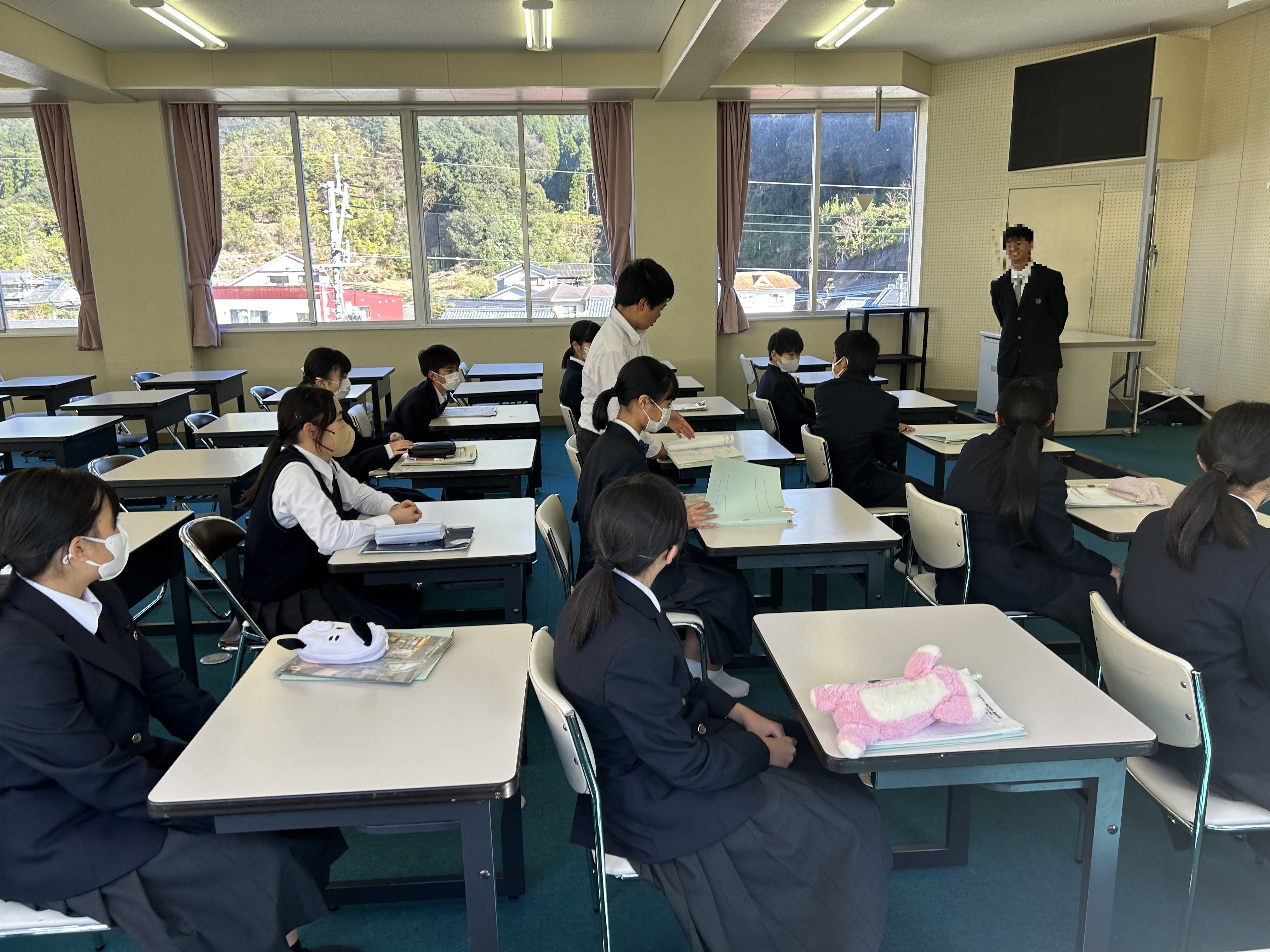 これから進路学習を始めていくことに先駆けて、実際に高校の学校生活の様子を見学しました。