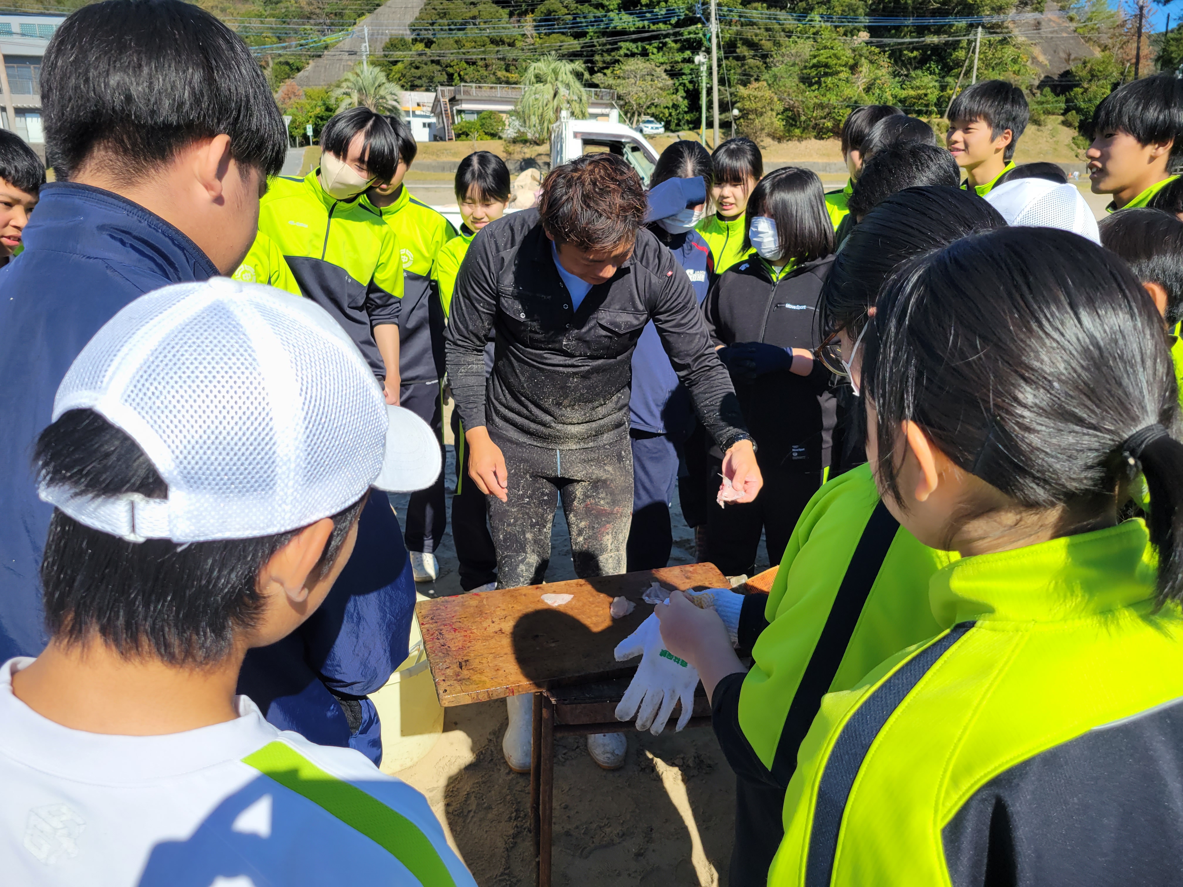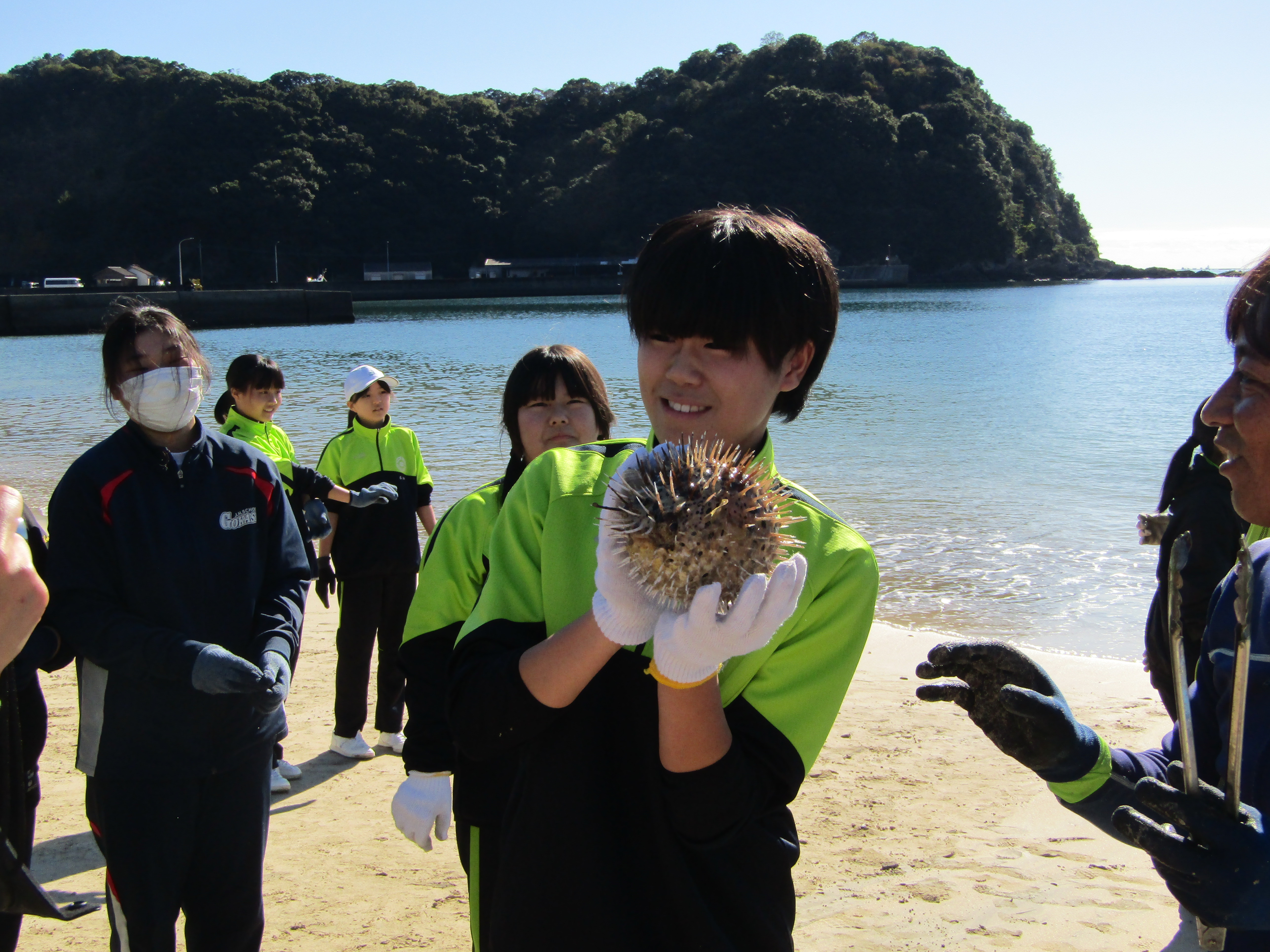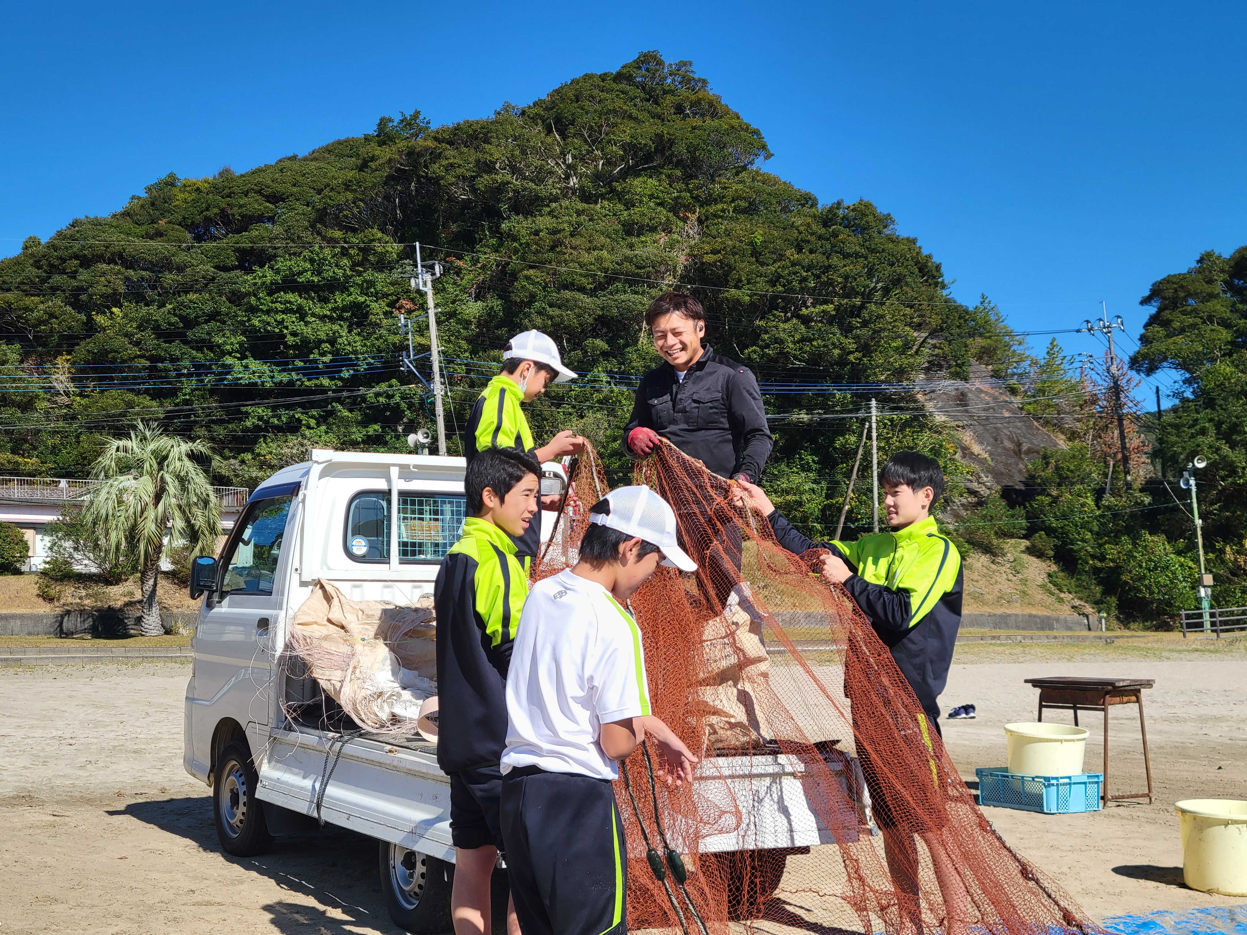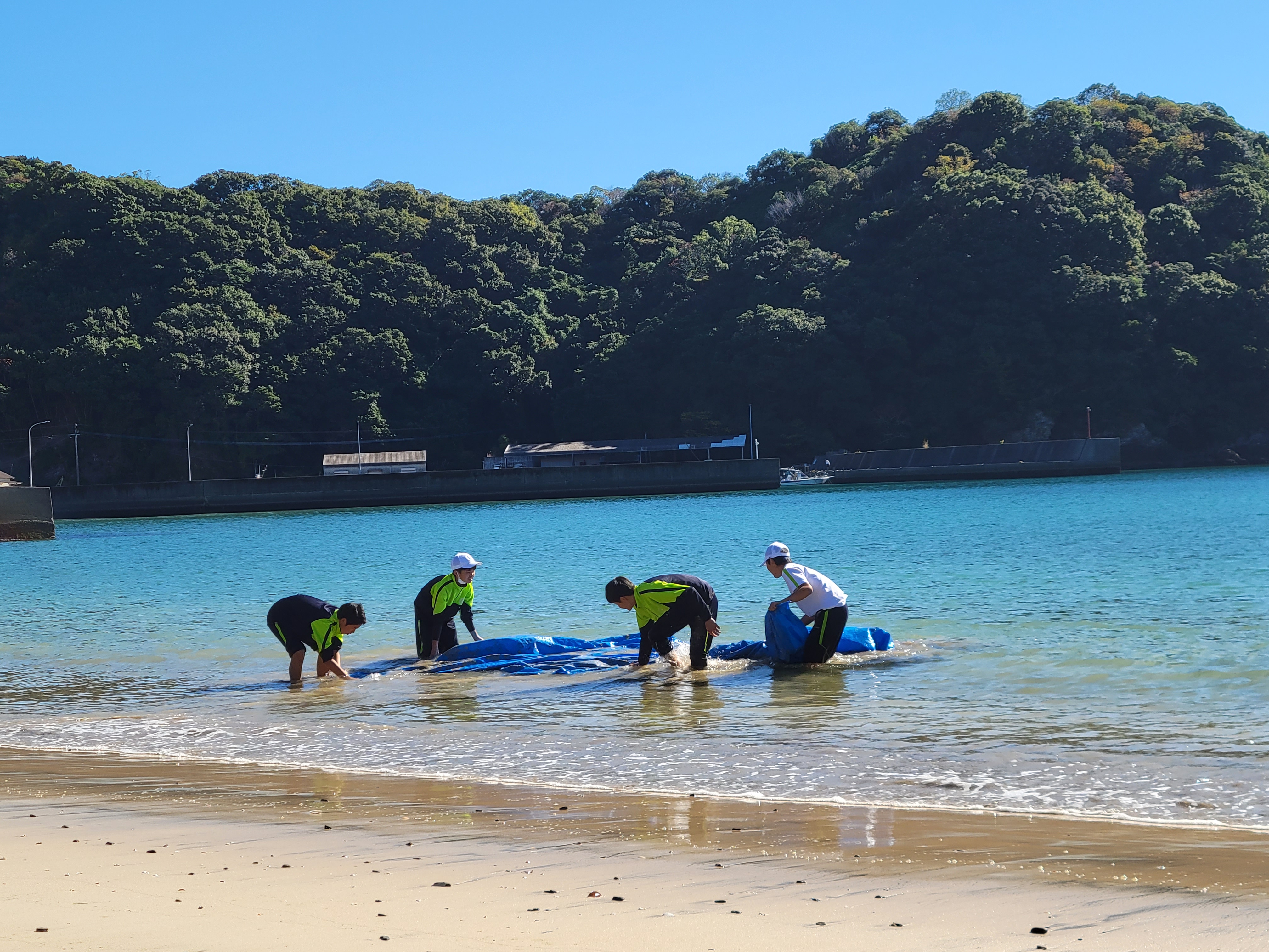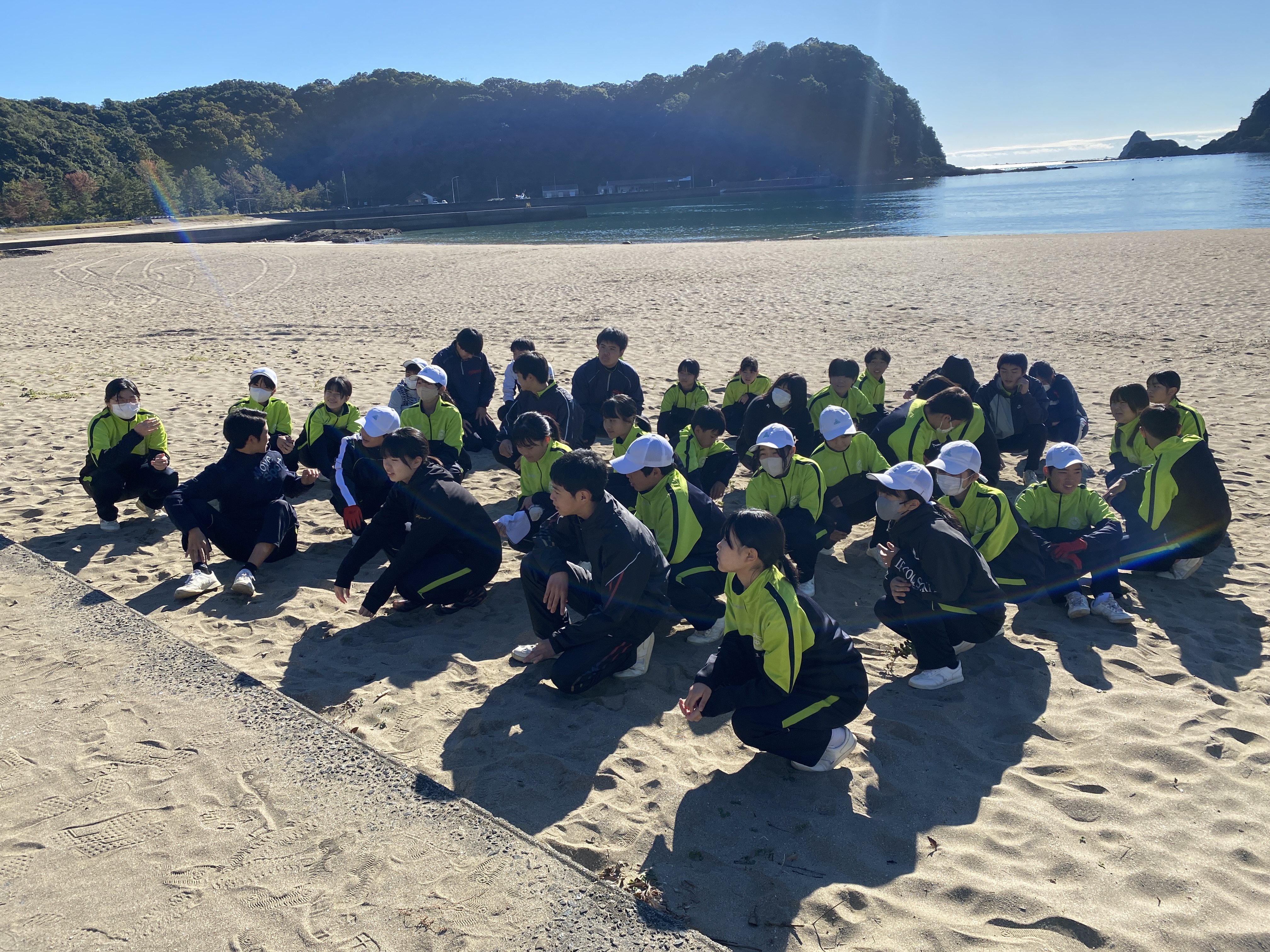 体験活動後は、須美江海水浴場のゴミ拾いをしました。綺麗な海水浴場を保っていくためには、「来たときよりも美しく」にしなければなりません。地引き網体験を行い、おいしい魚料理を食べてお腹が満たされ、ゴミ拾いをして綺麗な心に満たされる1日となりましたね