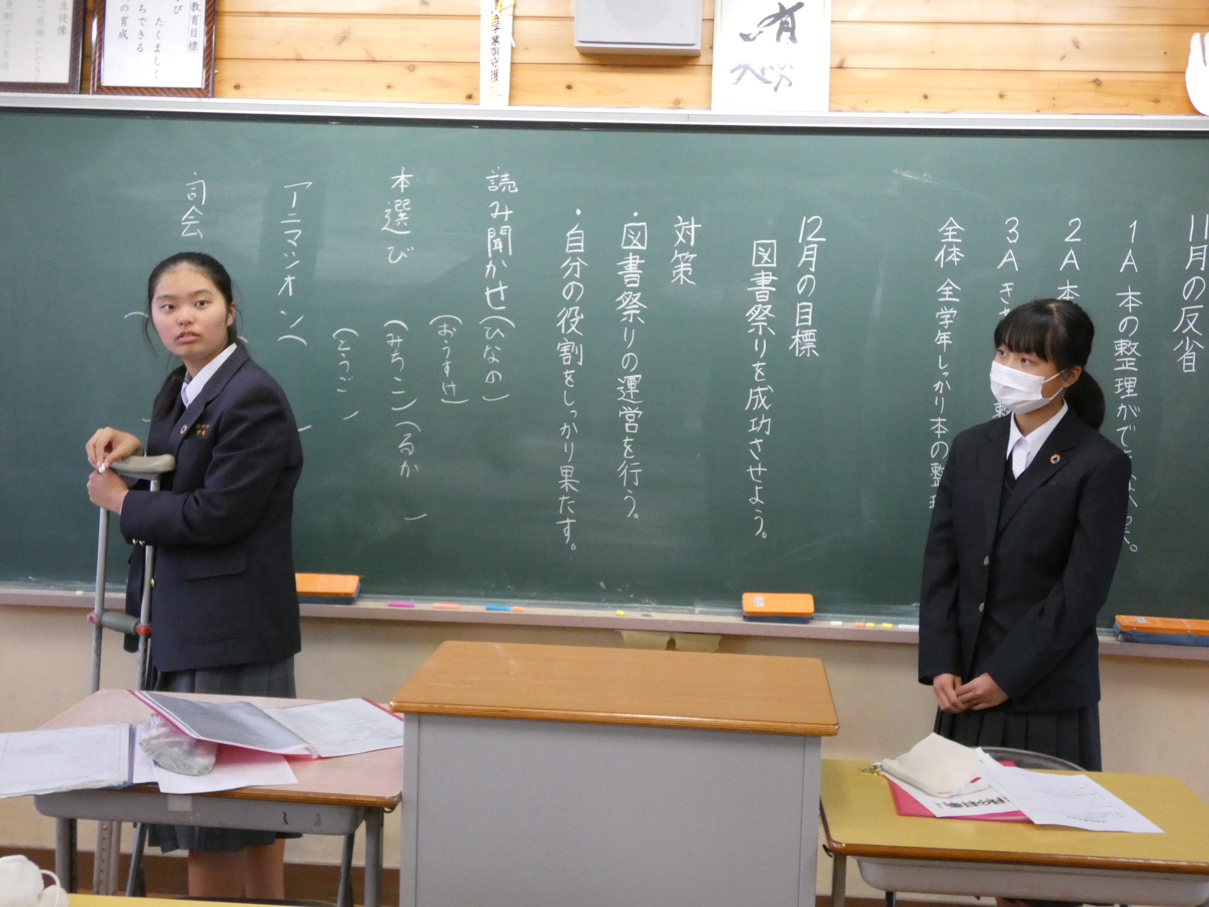本校には、生徒会執行部・学習図書委員会・体育生活委員会・文化放送委員会・保健給食委員会の5つの委員会に全校生徒所属しています。