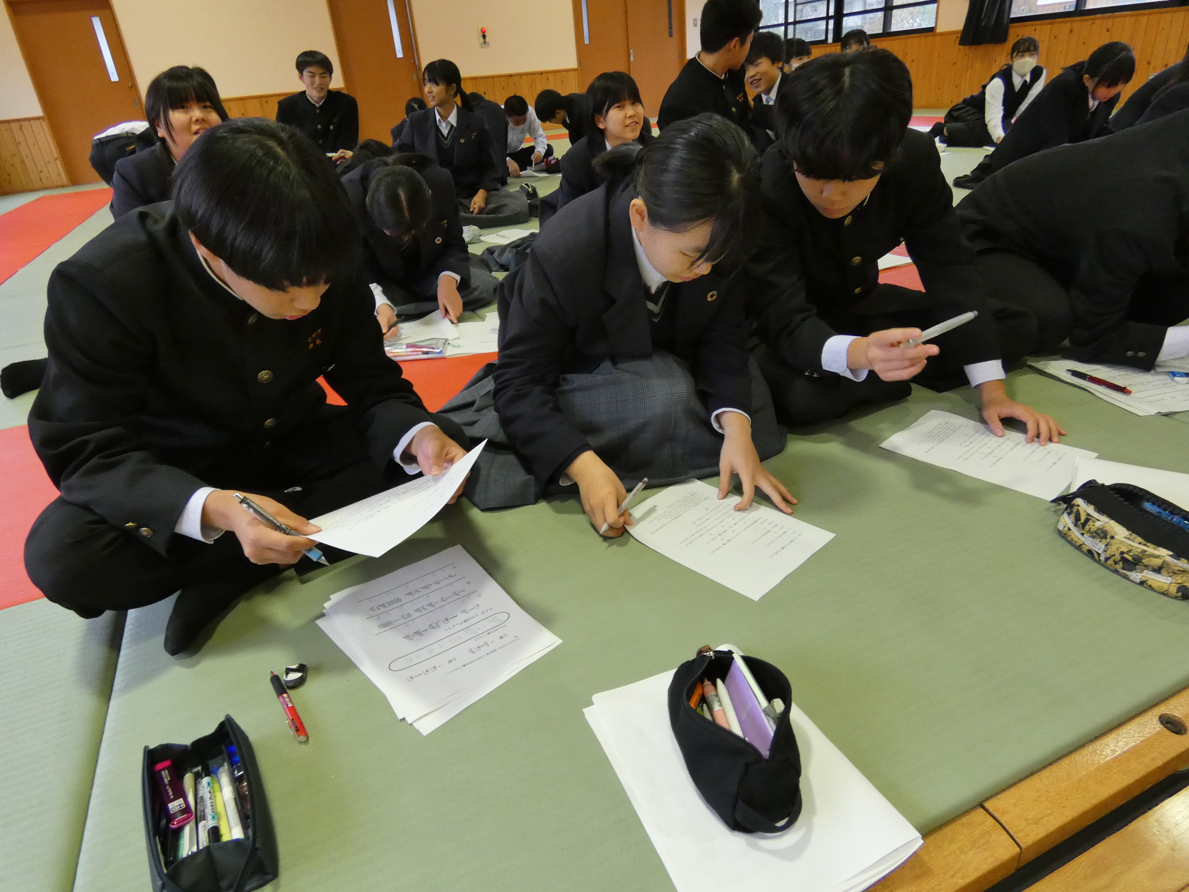 生徒達にとっても初めての試みで、上手く話し合い活動が進まないことや意見を出し合うことに苦戦する姿がありました。教師や大人から言われてからするのではなく、自分たちから発信して物事を決めていけるようになるといいですね!