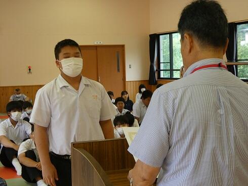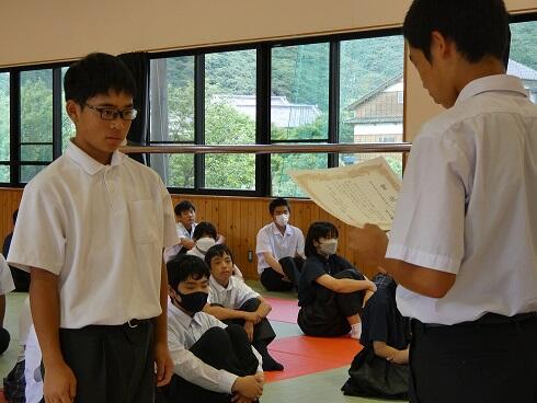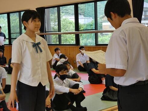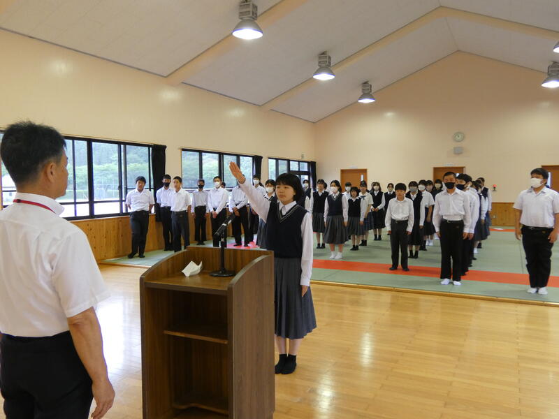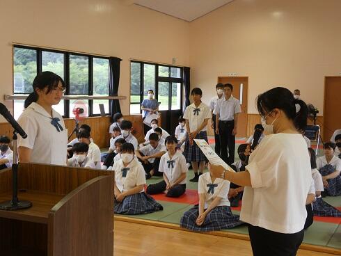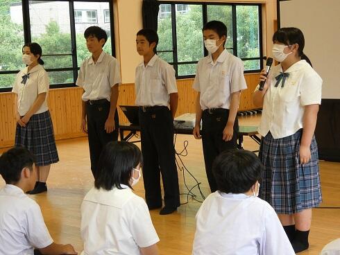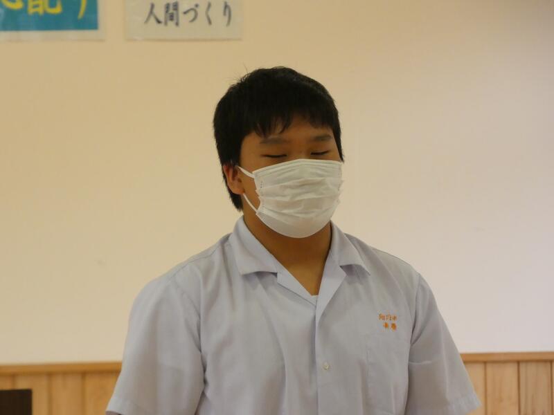 始めに、各学年の代表生徒による「1学期の反省」を作文発表しました。