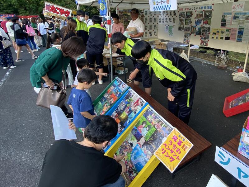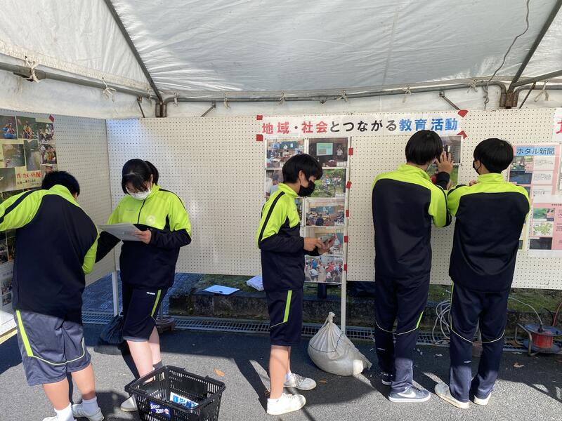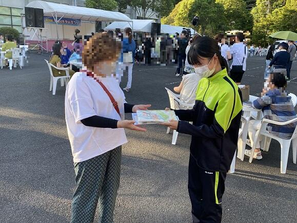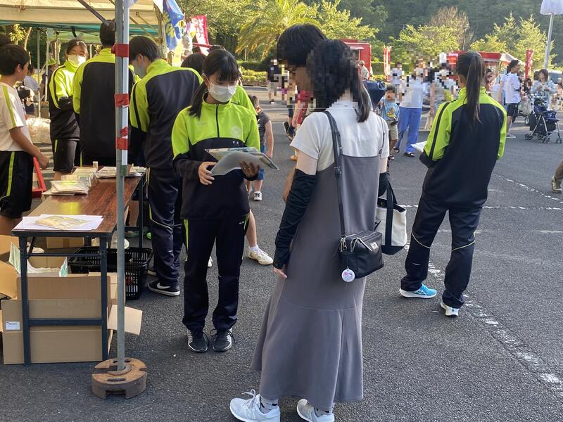 ボランティアで多くの生徒が参加し、会場の設営や手作りのエコバッグ配布、ゲームの運営やホタル鑑賞先の案内を行いました。