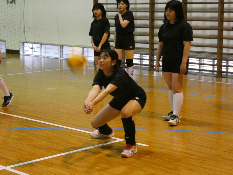 部員の半分以上が未経験者で、スパイクを打てる部員が2名しかいない中、他のメンバー各々のサーブとレシーブを繋いで先生方を相手にしたゲームをしながら頑張っています。