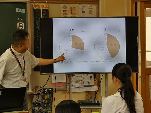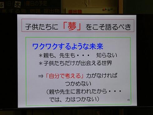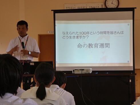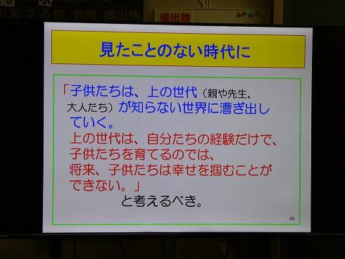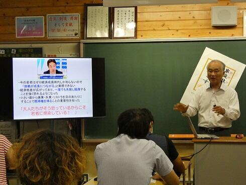 今回の家庭教育学級では、現在、延岡市キャリア教育支援センター長のる水永正憲さんを講師に招き「20年後の未来を私たちはどう生きていけばよいのか?」を演題として保護者・教員に講演をしてくださいました。