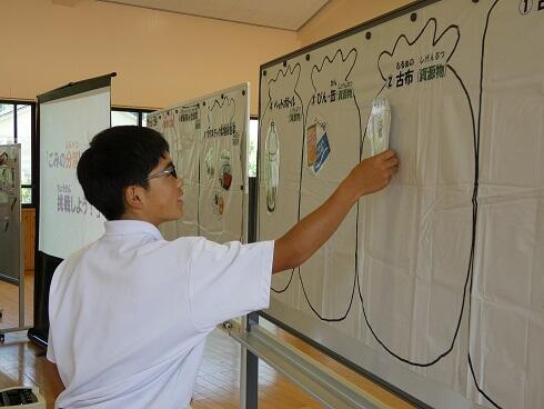 8月19日(土)に、道の駅北川はゆまでエコバッグ配りを行いました。9名の生徒が参加して、予定より約1時間早く終わりました。