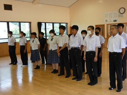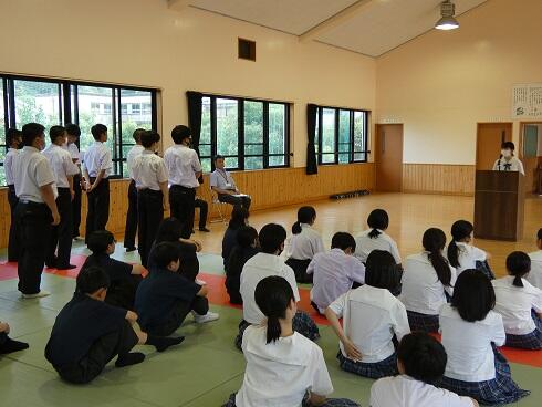 4時間目に激励式をしました。 明日から延岡地区中学校総合体育大会が始まります。