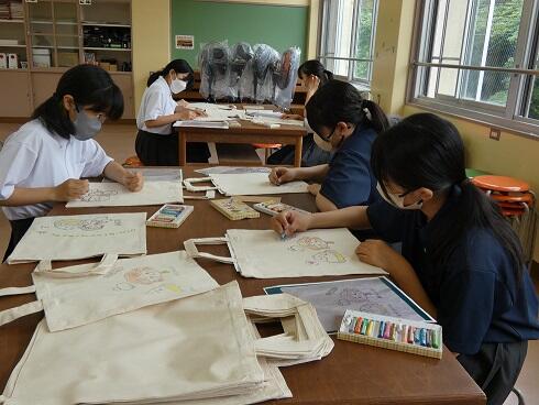 それに向けてキタル部を筆頭に、ボランティアでエコバッグの作成をしています。1つ1つ丁寧に絵を描いてアイロンがけをしています。