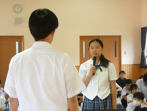 各学年より多くの意見が出されました。意見を言う場では全校生徒の過半数が演台の前で発言をすることができました。