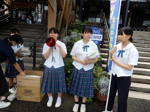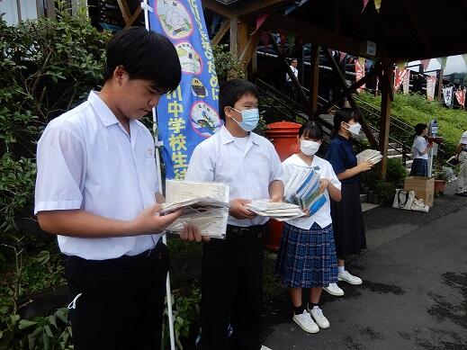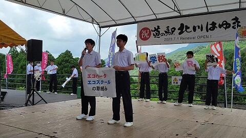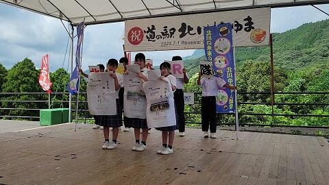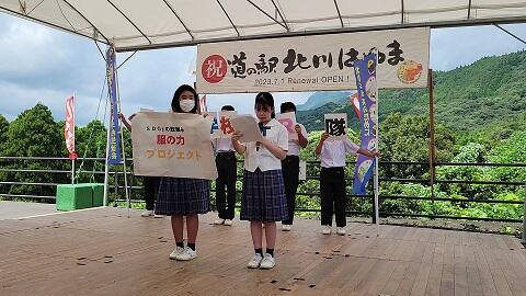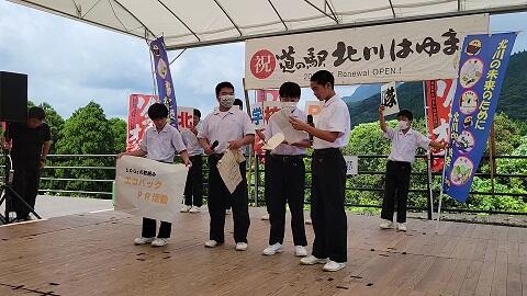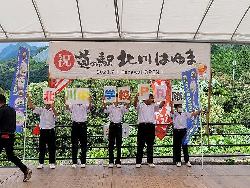 7月29日土曜日、道の駅北川はゆまリニューアルフェスティバルに北川中学校の生徒が参加しました。