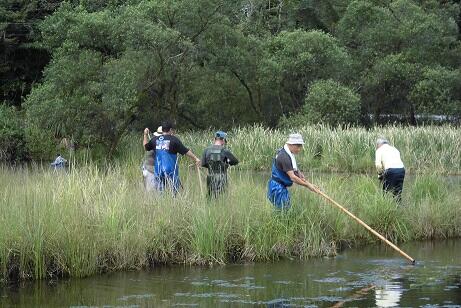 僕たちは、オオフサモ・菱の実・オランダガラシなどの外来種の駆除作業を約2時間ほど行いました。オオフサモやオランダガラシは、小川の水の流れをふさぐ恐れがあるので1年に2回ほどこのような会が開かれます。