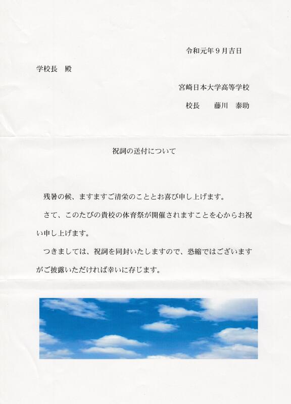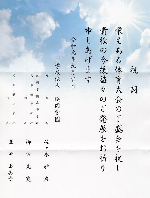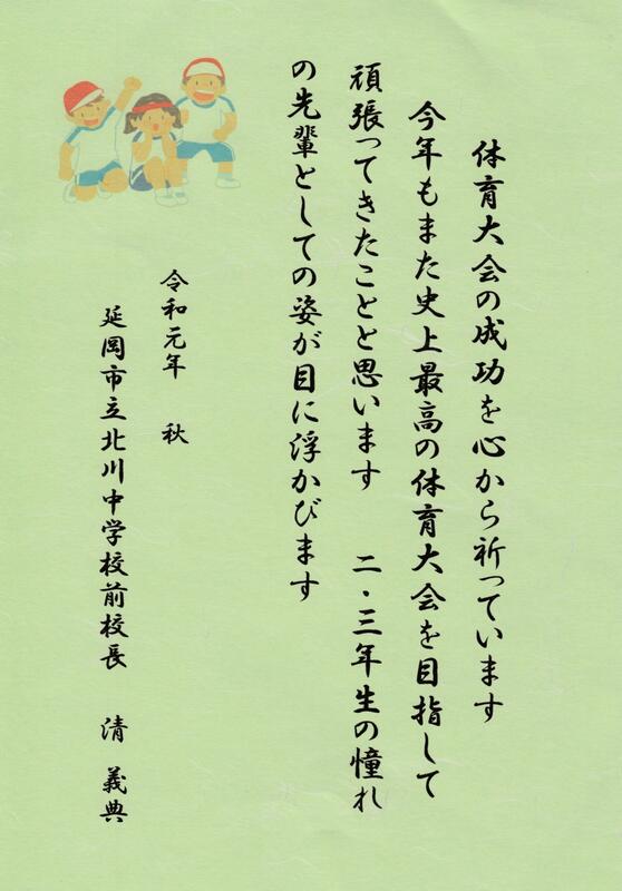 第73回北川中学校体育大会を開催するにあたり沢山の祝詞を頂きました。
