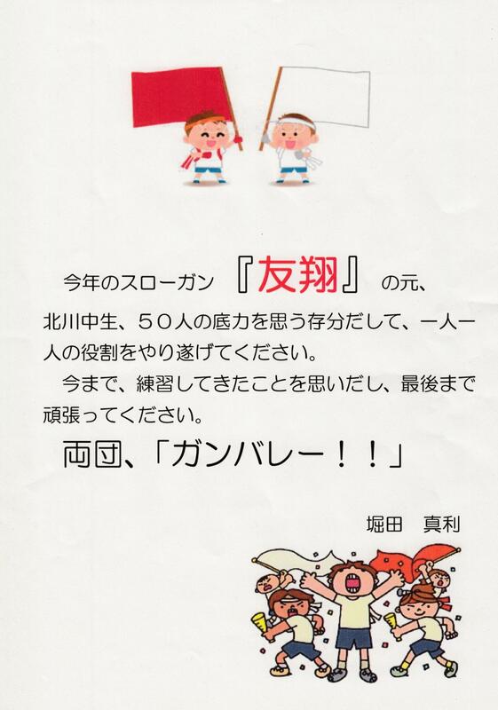 団長、副団長を中心に一生懸命に全生徒が取り組み、スローガンの「友翔 ゆうしょう」の文字のとおり友情を高めることができた一日でした!