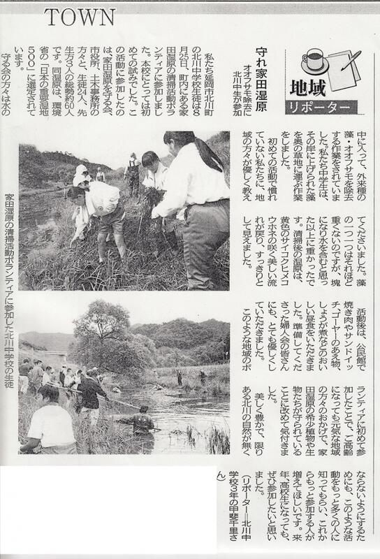 家田湿原の清掃ボランティア活動が夕刊デイリーに載りました