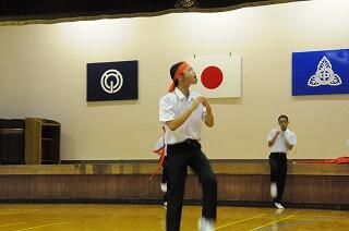 副団長の、橋本小桜子さんと木本さくらさんが、団長にハチマキをしめてくれました