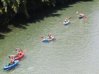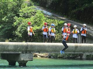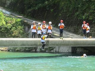 昼食後にインストラクターの指導の下で川へのダイビング体験