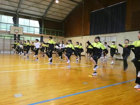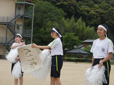 団に分かれて応援練習の練習です。リーダー達が一生懸命声を出していました。リーダーの頑張りに答えるように他の生徒も動きや声出しを練習しました。