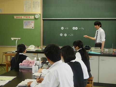 2年生は理科をしていました。元素記号を覚えているようです。「水平リーベー僕の船」とかありましたね。