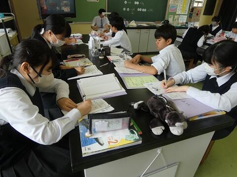 今日は各学年の授業風景を紹介します。1年生は社会(地理)をしていました。地図帳をめくりながら、何かを探していますね。