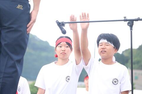 エール交換の様子です。両団ともに全力を尽くして頑張れるよう、お互いにエールを送ります。