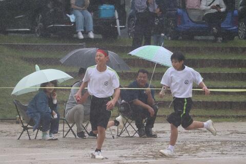 最後に、対団リレーです!最後は土砂降りの中、各団の代表が一生懸命にバトンをつないでくれました!ぬかるんだ地面に苦戦しながら懸命にバトンをつないでくれました!