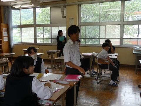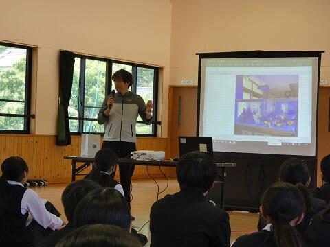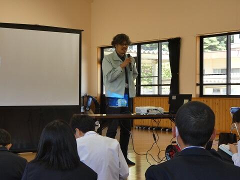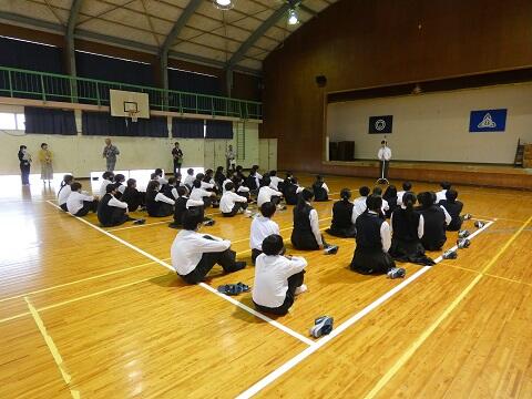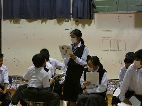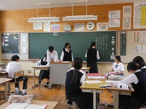 本日は「地域の人の声を聴く会」を行いました。こちらは北川で活躍される方から、地域の現状や働くこと、貢献することを聴き、これからどのように中学生として北川に貢献するか考えるものです。