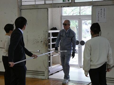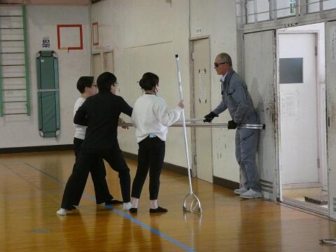 実際に不審者対応として刺股を使いましたが、不審者役の方の力も強く、包丁(おもちゃ)を出されたときはとても緊迫感がありました。学校で生徒を狙った事件が起きることもあります。そういったときに教職員で絶対に生徒の命を守る心構えを再確認できました。