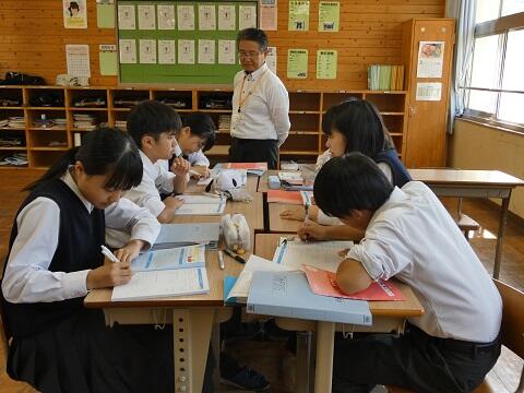 3年生は数学をしていました。流石は受験生!練習プリントを取り組む姿勢が1・2年生とはちょっと違いますね!真剣そのもの!分からないところは隣の人に聞いていました。