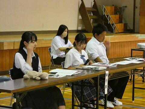 役員になっている生徒が用具準備や放送など体育大会運営のために打ち合わせをしています。円滑な大会運営のために頑張っています!