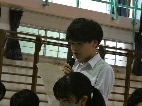 本日は生徒総会がありました。今回注目したいのは第4号議案の「私たち一人一人が北中生としての誇りを持つためには」です。誇りは大人が考えても難しい内容ですよね。生徒総会ではこれらについて白熱した議論が行われました。