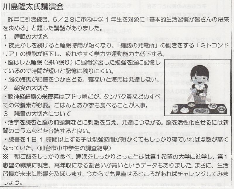 6月28日金曜日に市内中学1年生を対象に「基本的生活習慣が皆さんの将来を決める」