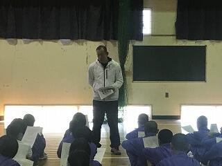 清掃集会では全体で中学校での清掃の仕方を教わりました。
