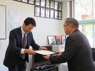 (延岡税務署の署長様より黒木校長に委嘱状を交付していただきました。)