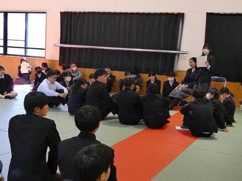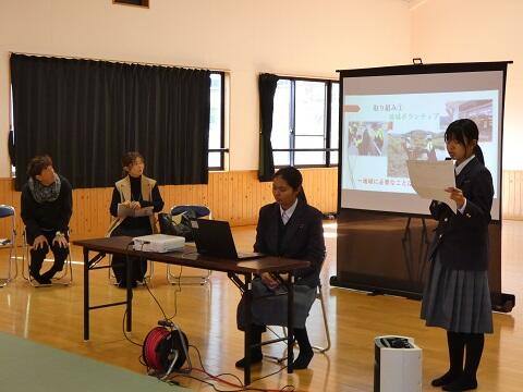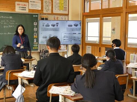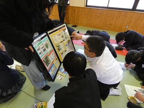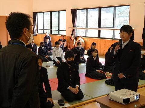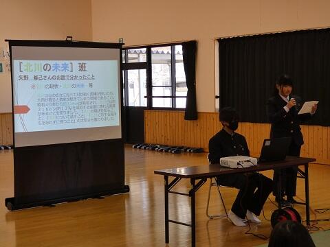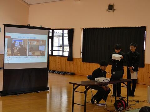 2年生が授業でまとめたプレゼンテーションを活用し、4つのテーマの実践報告を行いました。