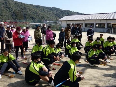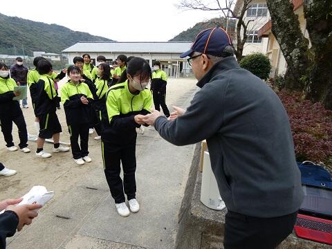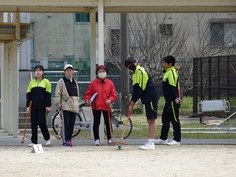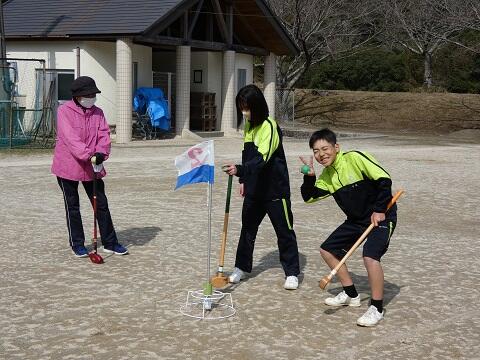 5・6時間目に2年生はグラウンドゴルフをしました。地域のグラウンドゴルフ愛好家の方々が25名来られて生徒たちと交流しました。