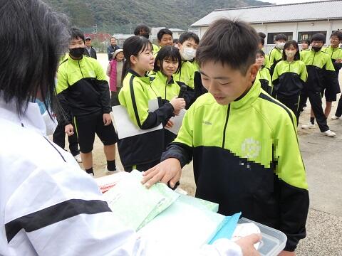 3月10日(日)に北川町の下赤で行われた『第3回 だがしの日』に北川中学校の生徒がボランティアとして参加しました。